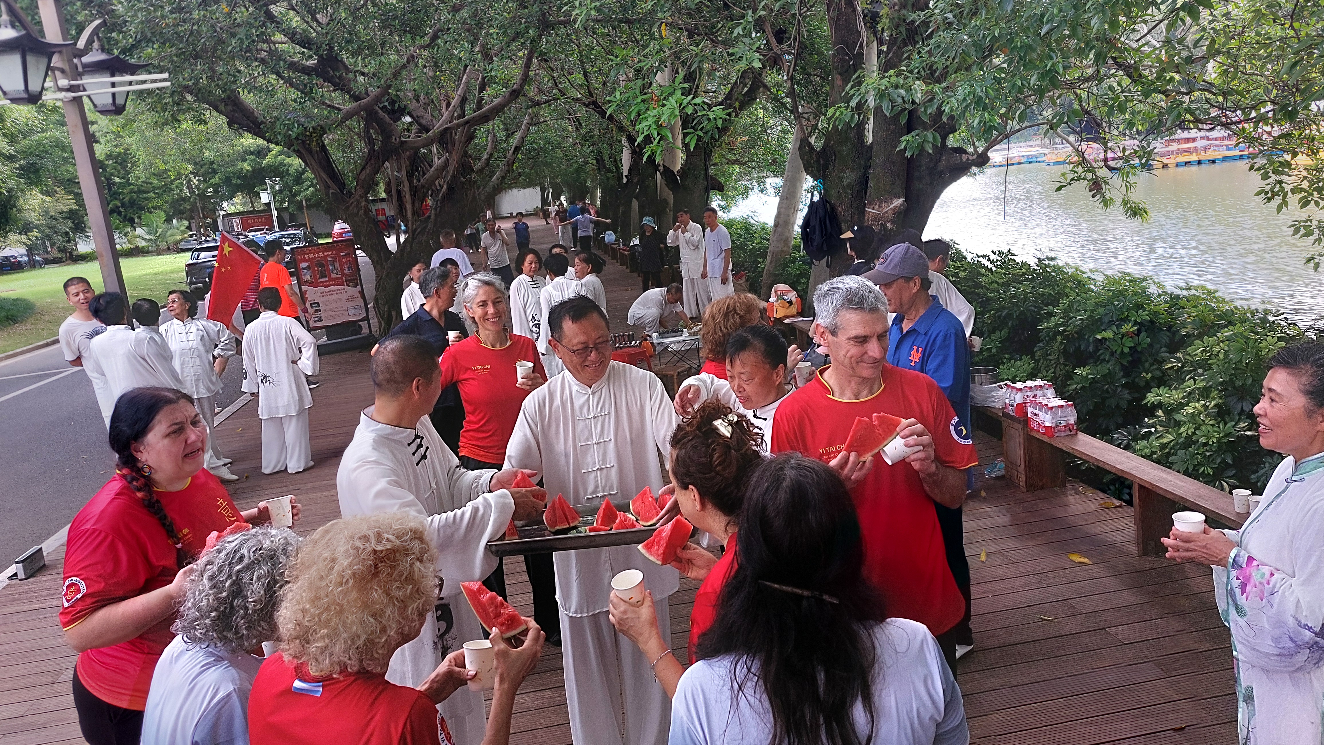 Tuvimos como destino principal la ciudad de Fuzhou, capital de Fujian. Allí transitamos días de intensa práctica junto a los principales profesores de la escuela Huawu, dirigida por la Maestra Zeng Weihong. Fuimos recibidos, una vez más, del modo más cálido y amoroso por la Maestra y toda la Escuela. Nos mostraron una hospitalidad y generosidad sin límites. Además de compartir prácticas con profesores y grupos de alumnos de la Escuela, participamos de un Encuentro de Comunicación, con el objetivo de reunir gran parte de la dicha institución realizando muestras y exhibiciones, evento destinado a difundir la práctica de las artes internas y el turismo en la hermosa ciudad de Fuzhou. Otro aspecto a destacar es que, por primera vez, instructoras de YITAICHI Argentina, rindieron y aprobaron el examen de primer nivel, siendo reconocidas como instructoras de la escuela Huawu. En mi caso, rendí y aprobé el examen de tercer nivel. En Fuzhou, junto a la Maestra Zeng Weihong y su escuela, nuevamente experimentamos eso de estar “del otro lado del mundo” y sentirnos como en casa, en familia, exactamente lo mismo que nos hizo sentir el Maestro Zeng Nailiang en nuestra anterior visita a Fuzhou.